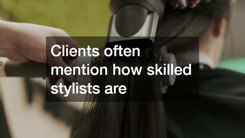 Stylist expertise: Clients often mention how skilled stylists are with haircuts, coloring, treatments, and styling.